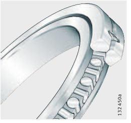 圓柱滾子是X型布置的,一個這樣的軸承就可以承受兩個方向的軸向力、徑向力、傾覆力矩和其它聯(lián)合載荷。因此兩個軸承布置的設(shè)計(jì)方案能夠用單個SX軸承布置方式來代替。